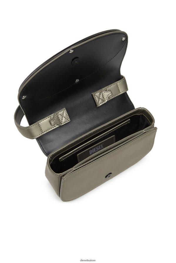 it-bag de diesel, cet accessoire pour femme est confectionné en cuir avec une finition mate métallique élégante. conçu dans une forme structurée en demi-lune, ce design convoité a une poignée supérieure qui s'adapte sur l'épaule et une bandoulière plus longue supplémentaire. Le matériel ovale audacieux embellit le rabat pour une touche de signature.