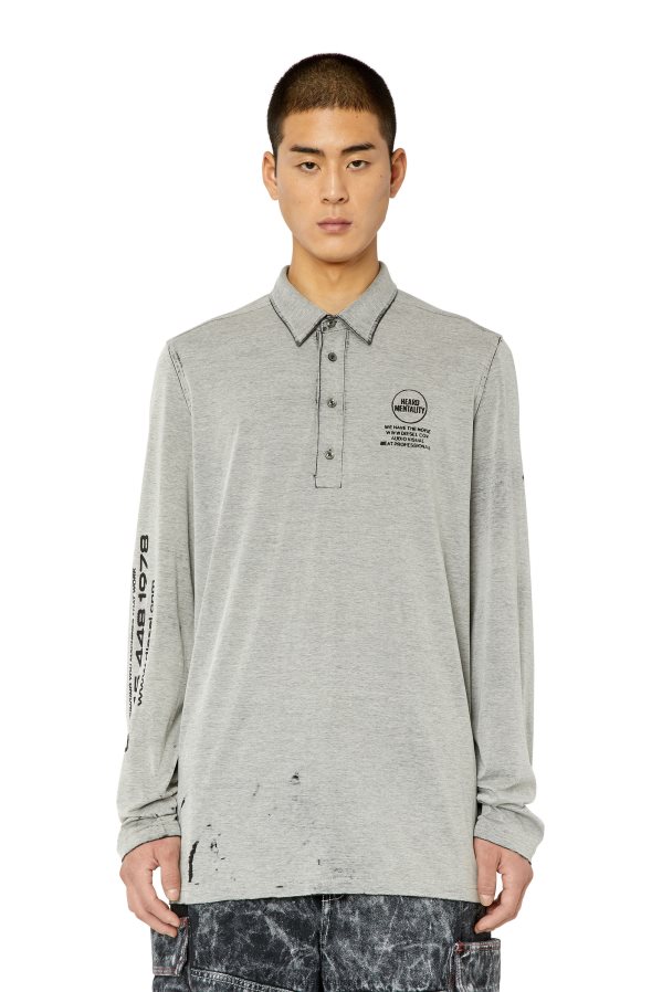 ce polo pour hommes est confectionné dans un mélange de coton dans une silhouette ajustée à manches longues. le traitement burnout et les logos lui donnent une touche vintage distincte.
