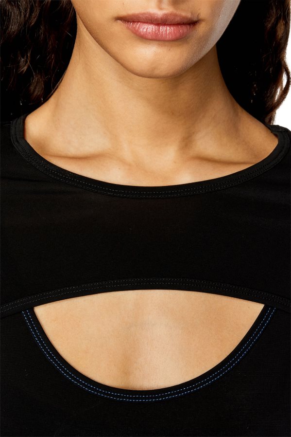 ce haut à manches longues pour femme donne l'impression d'être superposé à un débardeur. Coupe slim à partir d'empiècements ton sur ton en jersey stretch léger, elle présente un décolleté découpé et des surpiqûres contrastées. un logo « ovale d » brodé accentue le dos.