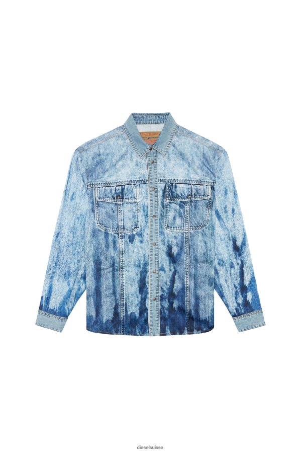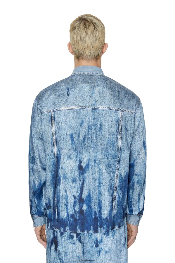 chemise unisexe regular fit en satin avec un imprimé denim en trompe l'œil. bordé de denim diesel au col et aux poignets avec un traitement assorti.