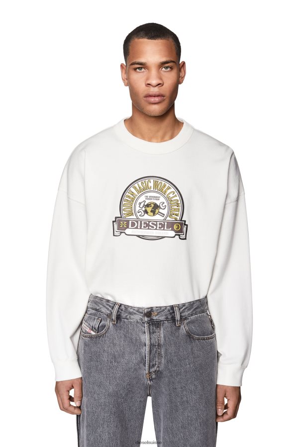 sweat-shirt ample en jersey de coton loopback au toucher agréable. faisant partie de la capsule du défilé de mode printemps-été 2022, il présente un écusson d'archive «diesel modern basic work clothes» en pvc brillant.