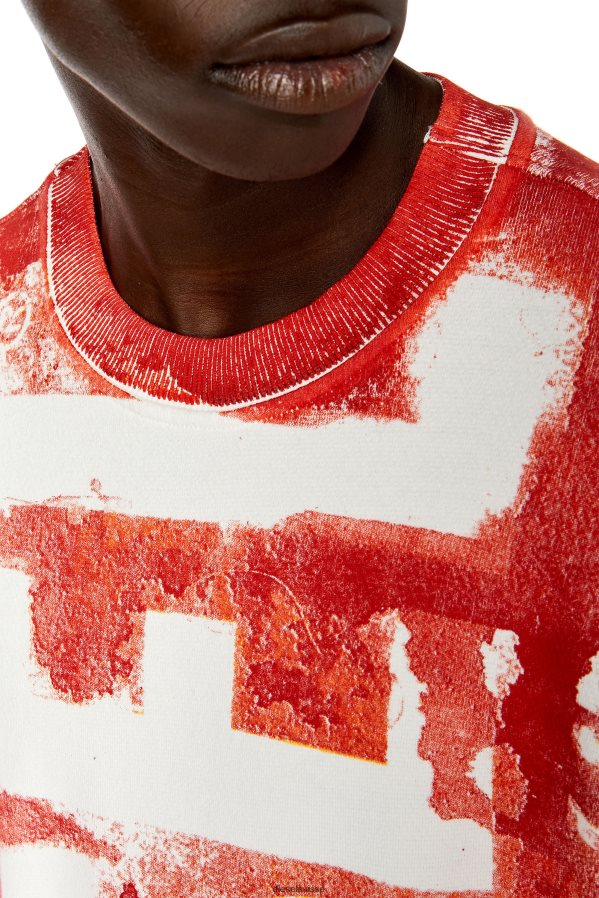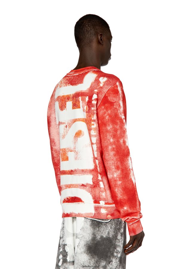sweat-shirt en coton pour homme avec une coupe régulière. spécialement imprimé pour créer des effets de taches et de décoloration, ce style emblématique présente un logo diesel géant à l'avant et à l'arrière.