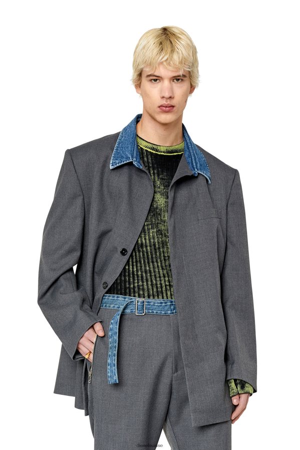 Inspirée des coupes ajustées, cette veste pour homme arbore une silhouette formelle déconstruite. coupé à une coupe ample à partir d'un mélange de laine italienne, il est mis à jour avec un col en denim contrasté.