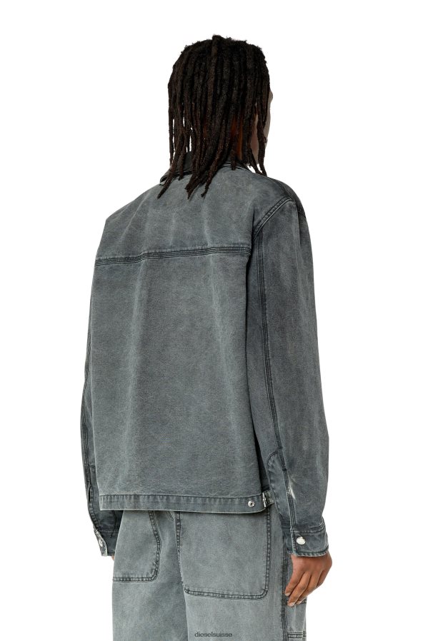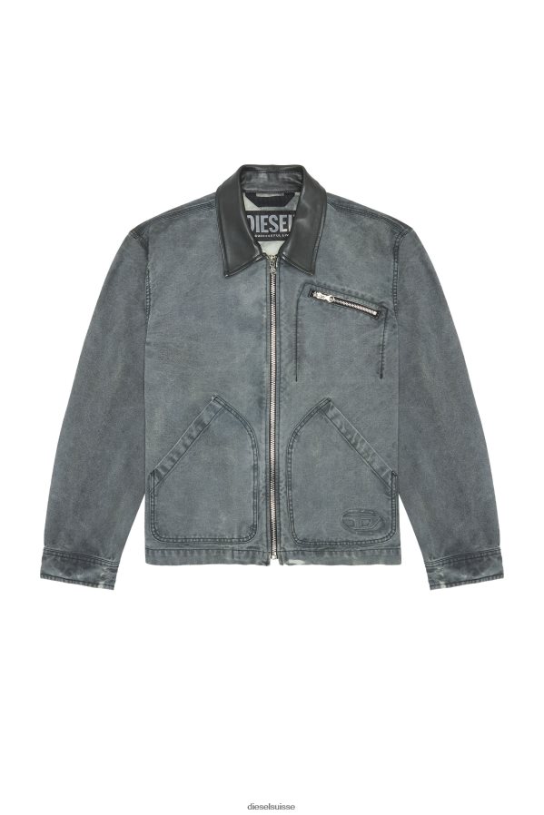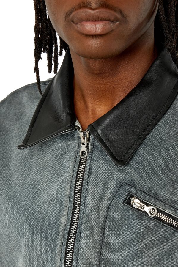 veste de coupe classique en toile de coton épaisse, traitée pour un effet sale inspiré des vêtements de travail. ce modèle pour homme est revisité avec un col en cuir et un logo ovale « d » en relief sur la poche gauche.